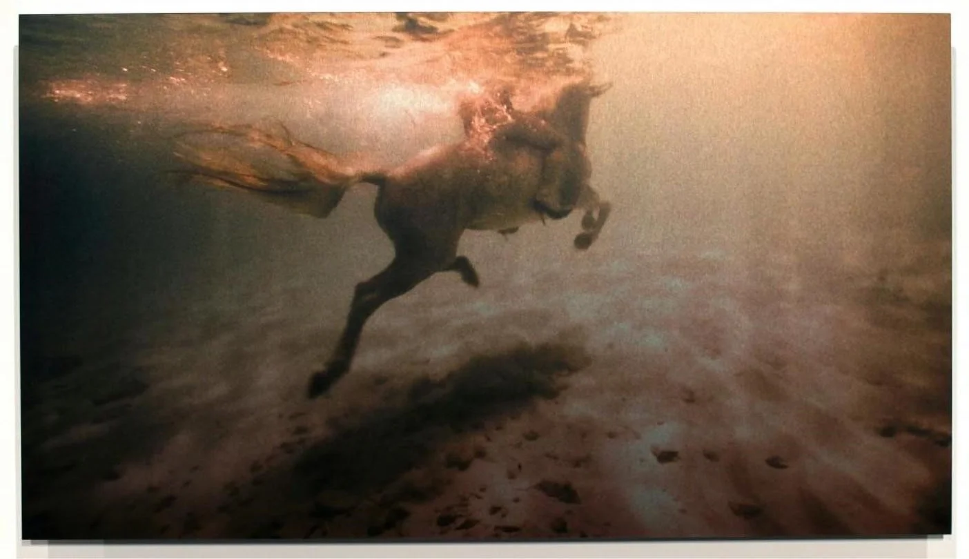 She is returning to San Francisco but days before her solo show, Strange Bodies at Gallery Wendi Norris opens on April three in which she will display all new work that explores how women navigate geographic, social, and physiological boundaries between the United States and Mexico. "Foreign Bodies has been my most challenging exhibition," she says. "It is starting time of all my most vulnerable. My paintings are what feel safe for me, and Foreign Bodies has everything: installation, video, photographs which I have never dared to prove before. And even my paintings, they are some of the near challenging performances I've done… this entire show is about coming of age and passages of growth through rebellion." Fernández's performances explore how women and their bodies are symbolic of shifting political and social atmospheric condition, and she documents them in photographs and paintings. An emotionally complex serial of photographic prints, the Arrastre series, which will be on view documents the artist'south performance as she rode a white horse inside sinkhole waters in Mexico, exploring an intriguing relationship betwixt animal, creative person, and a body of h2o loaded with personal and historical importance. "As a very young child I wanted to exist Alex, the kid in Francis Ford Coppola's motion-picture show the Black Stallion, which was a metaphor for Alexander the Bully's showtime coming of age or conquest, a black equus caballus. I mixed that metaphor as well as the prince rescuing a woman on a white equus caballus. Just instead I went to a sink hole in Mexico where thousands of virgins had been drowned every bit sacrificial offerings to the gods. I went into the sink pigsty and attempted to ride a wild white stallion, equally a fashion to reclaim or change the history of that site. I came of age for many women who never got to come of age. Information technology was a rebellious human action such equally painting the border out, erasing a bit of history, as a poetic politic stance."